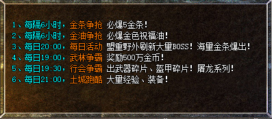3、每日20:00,每日活动、盟重野外刷新大量BOSS!海量金条爆出!