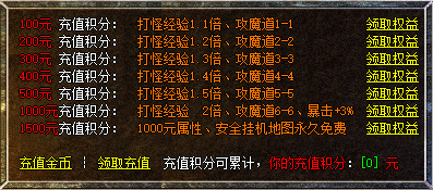 3、最豪横的玩法:5000档积分2.5倍经验,10000档积分3倍经验。大老板可开区就怼积分,领先一步!