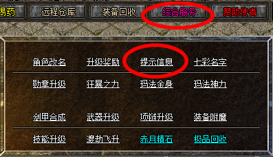 【提示信息】:顶部按钮【综合服务】--【提示信息】