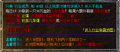 【屠龙系列】:每周六19:30【行会争霸】额外刷新一只远古巨魔,较高几率爆屠龙系列和40级新衣服!